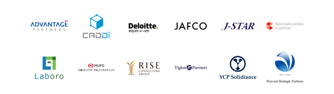 アドバンテッジアドバイザーズ株式会社 / 株式会社アドバンテッジパートナーズ / キャディ株式会社 /デロイト トーマツ ベンチャーサポート株式会社 / ジャフコ グループ株式会社 / J-STAR株式会社 /霞ヶ関キャピタル株式会社 / 株式会社Laboro.AI / 三菱UFJリサーチ&コンサルティング株式会社 / 株式会社ライズコンサルティンググループ / タイグロン パートナーズ株式会社 / 株式会社YCP Solidiance / 株式会社Wayout(Wayout Strategic Partners) / 株式会社日本総合研究所 /