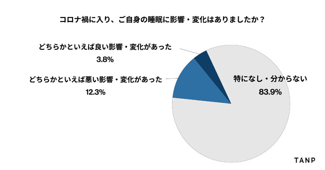 ■コロナ禍で睡眠に変化「特になし」が約8割。慢性的な悩みが伺える結果に