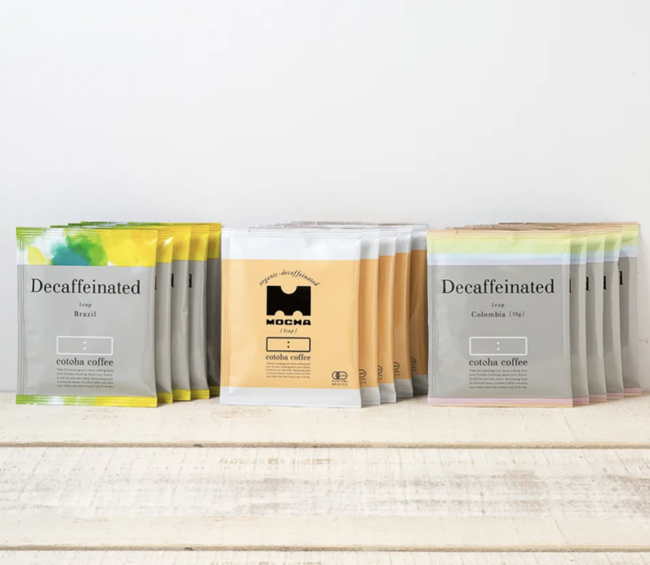 オーガニックコーヒーやカフェインレスコーヒーを中心に展開するブランド「cotoha coffee」の、カフェインレス商品3種類(モカ・コロンビア・ブラジル)が各5袋ずつ楽しめるセットです。夜のホットドリンクとしても、日中のコーヒーの置き換えとしてもおすすめです。お湯を注げばすぐに飲めるドリップバッグのため、ご自宅でもオフィスでも手軽にカフェインレスコーヒーをお楽しみいただけます。