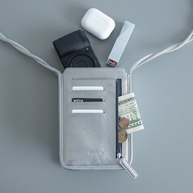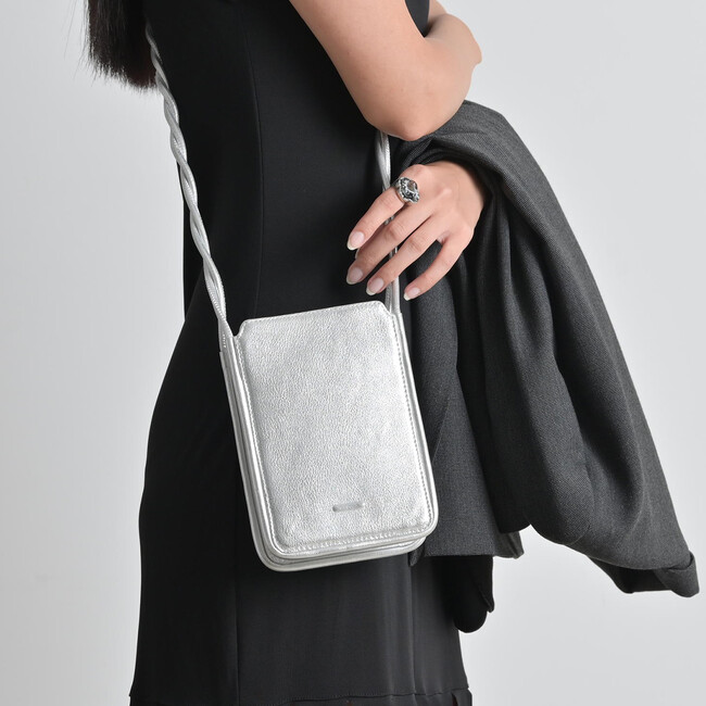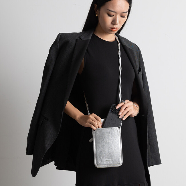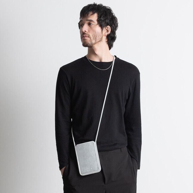 ウォレットバッグ・ウォレットバッグワイドに、メタリックな質感が特長の「シルバー」が新登場。LWG(Leather Working Group)認証の環境に配慮した「箔押しレザー」を採用しました。シルバーの光沢が程よい主張を添える、普段のコーディネートに取り入れやすいカラー。秋冬のコーディネートにクールな雰囲気を加えるワンポイントとして活用いただけます。