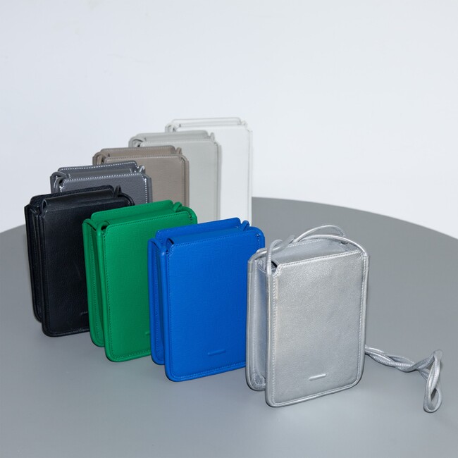 ウォレットバッグは、余計な装飾を削ぎ落としたシンプルなデザインで、ジェンダー問わず使用できるプロダクトに仕立てました。新色としてシルバー・ラピスブルー・ジョリーグリーンが加わり、カラーバリエーションは合計7色に。秋冬の装いに差し色として身につけることで、コーディネートのアクセントとしても活用いただけます。