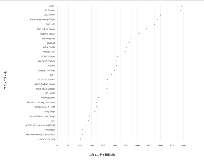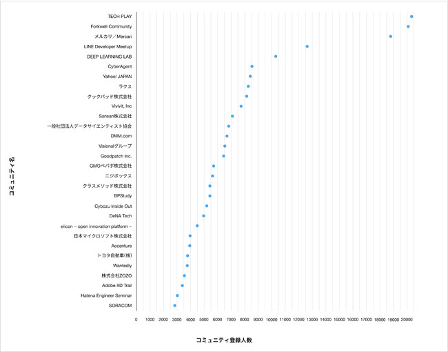 また連名型のコミュニティを除くと、Forkwell、LINE、メルカリ、CyberAgent、Yahoo! JAPAN、クックパッド、Sansan、DMM.comといった有名企業が続きます。これらのコミュニティの登録者数は6000人を超えています。