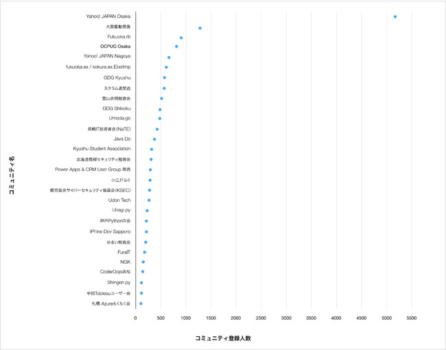 2. 地方拠点のコミュニティでは、Yahoo! JAPAN Osakaが5000名越えで一強