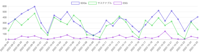 株式会社トドオナダ(代表取締役社長 松本泰行)は、2022年9月26日〜10月25日までのSDGs・ESG・サステナビリティに関するウェブニュースについて調査・分析いたしました。3,000以上のWEBメディアをモニタリングできるPR効果測定サービス「Qlipper」(https://qlipper.jp/)のデータに基づいた調査結果です。