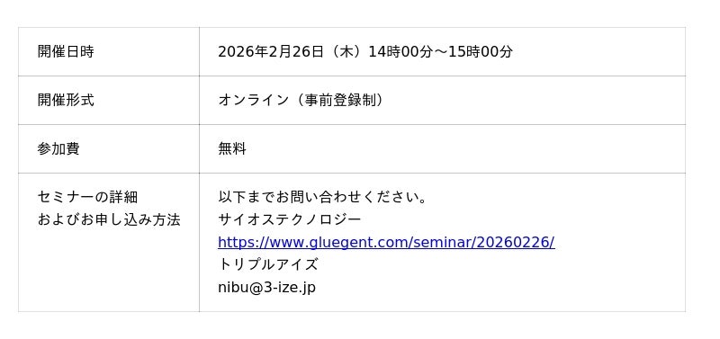 [表1: https://prtimes.jp/data/corp/63993/table/47_1_b05cba50d1b00c999e1491e1ea81a94c.jpg?v=202601291115 ]