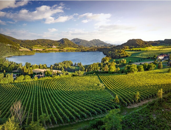現在ケルンテンには約130ヘクタールのブドウ畑があり、年間50万リットルのワインを収穫しています。
