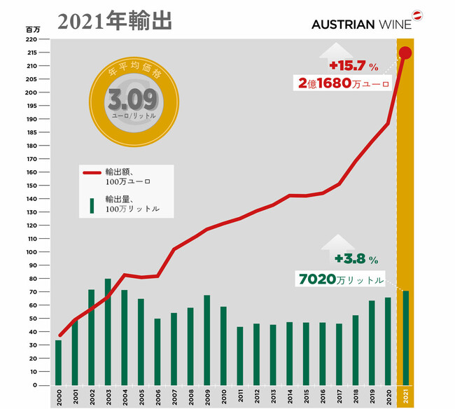 オーストリアワインの輸入 昨年に続き2022年も過去最高額を更新