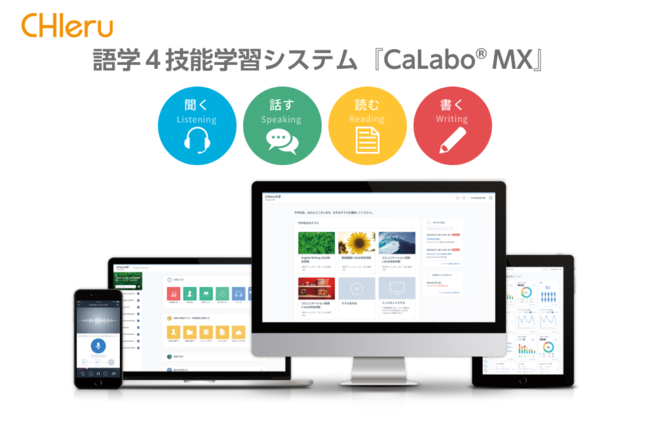 『CaLabo(R) MX』は、語学4技能の「聞く」「話す」「読む」「書く」に特化したクラウド型(注1)の語学学習システムで、ノートPCやスマートフォンなどのモバイル端末で利用できることが特徴です。主に高校、大学の英語などの授業でご活用いただいており、聞いた言葉をそのまま話す「シャドーイング」や聞いた言葉を書き取る「ディクテーション」、「語彙テスト」など授業運営に必要な各種機能を提供しています。先生に優しい操作性が授業進行をスムーズにします。