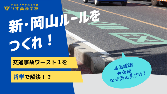 この度、「夏の自由研究・哲学で地元の課題解決 in 岡山」 として、岡山が抱える問題を哲学で解決できるか?という一日ワークショップを、ワオ高生が実践することをお知らせします。今年、「10万人あたりの交通事故死亡率」全国1位を記録してしまった岡山県。そこには、「右左折の意思表示を示すウインカーを直前にしか出さない」「信号のない横断歩道では歩行者がいても一時停止しない」などの「岡山ルール」と呼ばれる独自の良くないルールがあると言われています。モラルの問題?法律の問題?実際に調査をし、社会問題を哲学で解き明かしていく試みです。まさに、受験の学びから社会に役立つ学びへ、この暑い夏、ワオ高校のチャレンジの一つです。