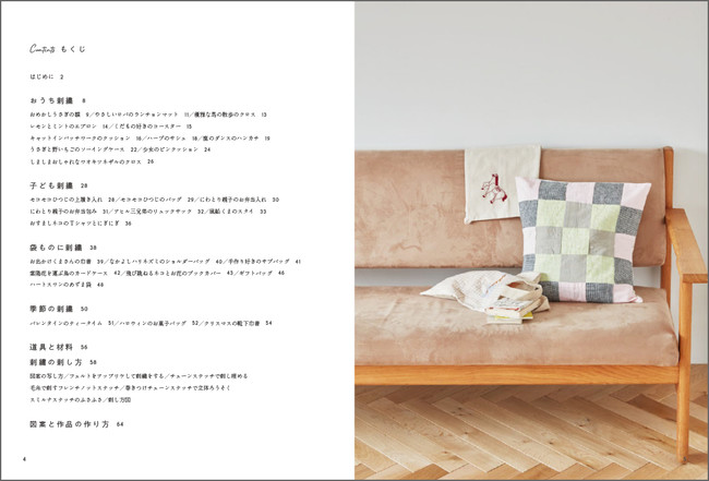 暮らしの中で使うものに、ちょっとほんわかした気持ちになる刺繍を取り入れてみませんか? ひとつポイントとなる刺繍を刺したら、小物に仕立てて暮らしの中で使えるように。どの小物も仕立ては簡単なので安心です。おうちで過ごす時間をやさしく心地のよいひとときにしてくれる、生活の一部分になる刺繍です。