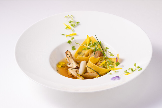 「神戸牛のトルテッローニ 泉州さといもコンフィ 和牛と茸のブロード」