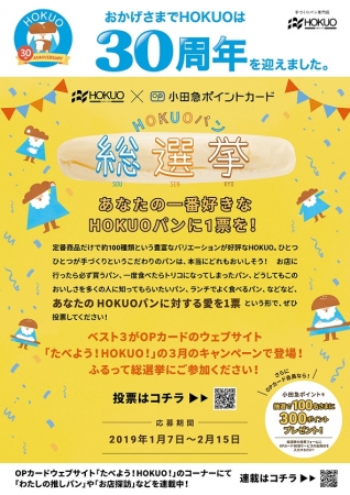 小田急グループでパンの製造・販売を行っている株式会社北欧トーキョー(本社:神奈川県座間市 社長:中島 純也 店舗名:「HOKUO」)では、2019年3月に開業30周年を迎えます※。