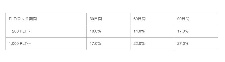 ステーキング報酬を年率換算(APR)した場合のプラン例