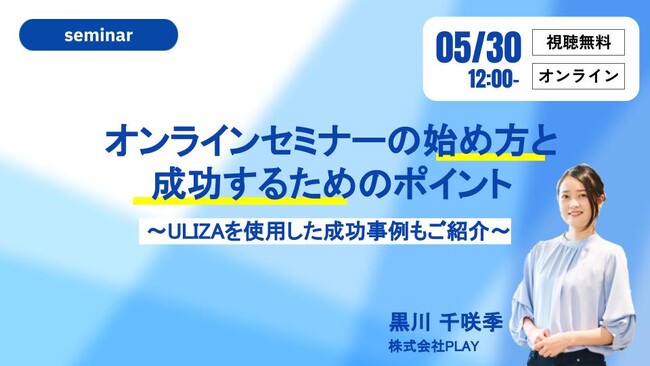 この度株式会社PLAYは、5月30日(火)12:00〜開催するセミナー「オンラインセミナーの始め方と成功するためのポイント」の申し込みページを公開しました。