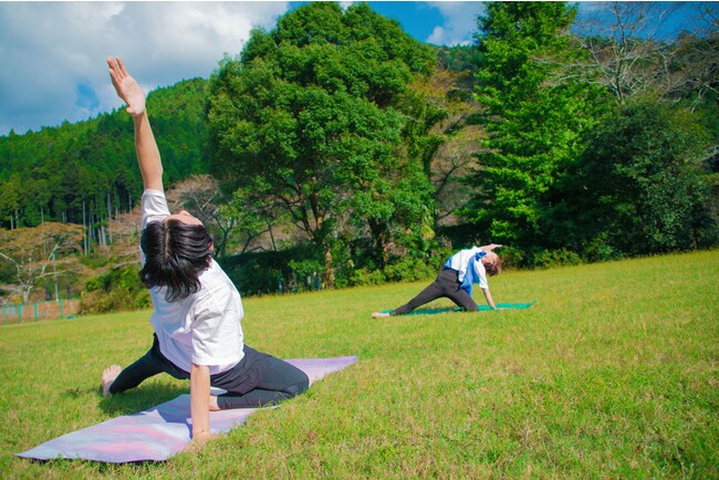 専門のヨガインストラクターの指導のもとで自然の中で行うヨガは、運動効果だけではなく自律神経のバランスを整えてくれるのでメンタルヘルス改善にも適しています。また、体験前後にハーブティーをお飲み頂くことで、ヨガの効果向上を促進します。
