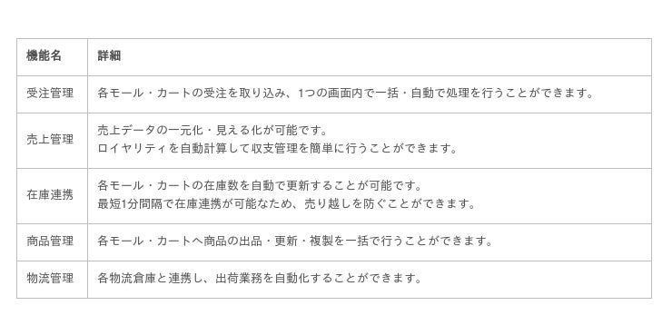 楽天市場、Amazon、auPAYマーケットなどの主要モールをはじめ、多くのモールやカートに対応しています。