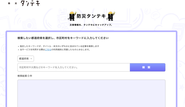 災害時などの緊急事態の際に、災害情報が掲載されたニュース記事を瞬時に検索し、タンテキに情報を得られるサービス「防災タンテキ」を無償公開いたしました。