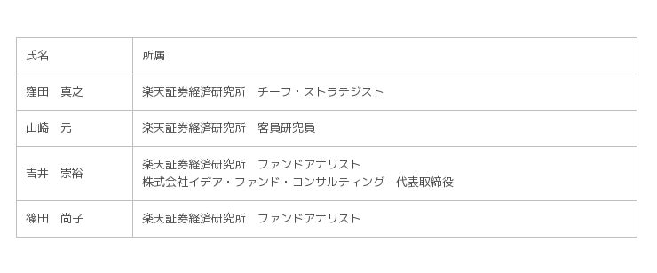 また、本ファンドスコアの導入にあたり、有識者による諮問委員会を設置します。楽天証券社外からのモニタリングを通じ、本ファンドスコアの評価プロセスと運用に対する透明性や客観性の確保と、個人投資家向け情報提供の向上を図ってまいります。