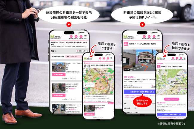 今回の提携により、特Pの駐車場情報は「賃貸スタイル」「ママ賃貸」「ほすぴた賃貸」の各サービスにおいて表示され、ユーザーは物件を検索しながら同時に駐車場を探すことも可能となります。月極駐車場と時間貸し駐車場の両方の情報が掲載される点が大きな特色で、駐車場が付帯していない賃貸物件でも周辺の月極駐車場を探せることでユーザーの選択肢は広がります。特Pの月極駐車場は、契約から決済まで全てオンラインで完結できる利便性の高さも特徴です。また、駐車場が不足しやすい病院や学校の行事には特Pの時間貸し駐車場が利用できるなど、個々の生活シーンにおいて駐車場を想定した物件選びができるようになります。