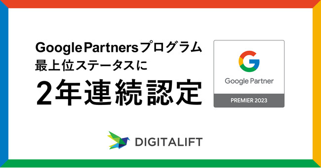 経営課題解決をデジタル技術で支援するコンサルティング企業、株式会社デジタリフト(本社:東京都港区西麻布、代表取締役:百本 正博、証券コード:9244)は、昨年に引き続き、Google Partnersプログラムの2023 Premier Partnerのステータスを獲得しました。