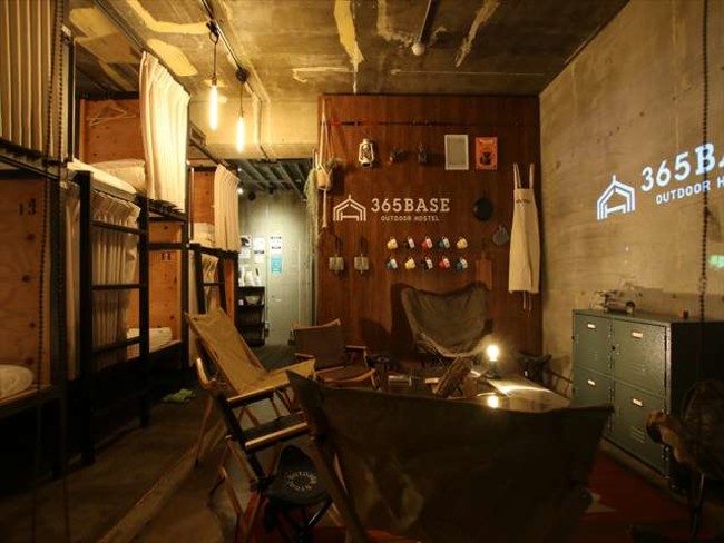 365BASE outdoor hostel はアウトドアコンセプトにした宿泊施設。元社員寮をリノベーションして2017年12月にオープンした施設です。