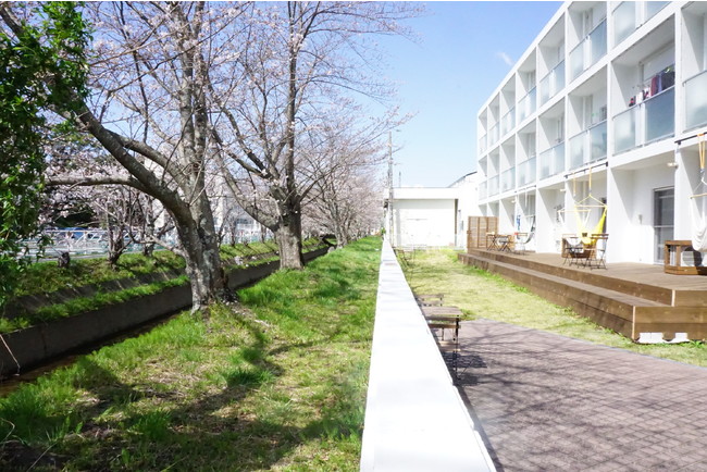 浜松の中心街からも電車で6分程度の住宅街の中にありながら、建物前面は水路と桜並木に囲まれた静かな環境です。