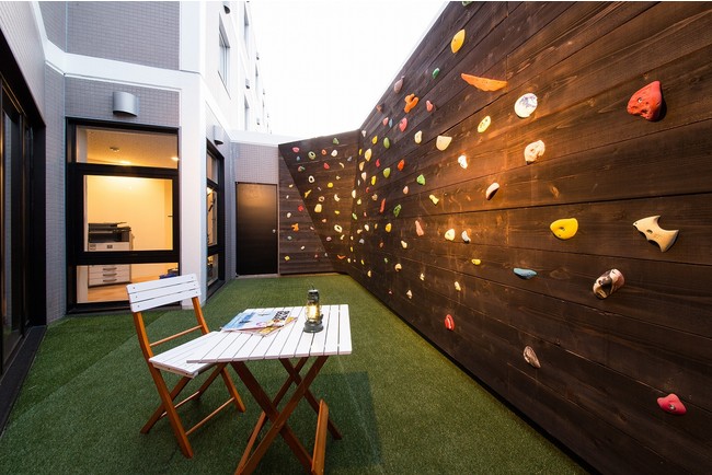 壁いっぱいに自由に楽しめるボルダリングを設置しました。