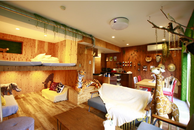壁に人工芝を施しサファリの雰囲気を再現。お部屋の各所にカワイイ動物たちがお出迎えしてくれます。