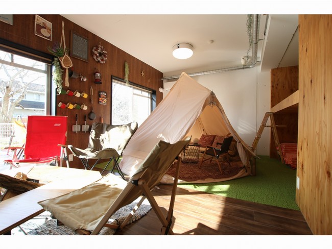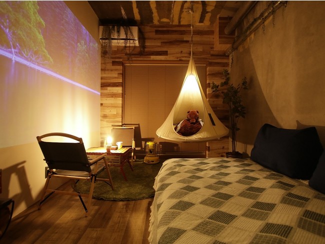 夏でも冬でもオールシーズン気軽にキャンプ気分が楽しめる屋内型キャンプ場をコンセプトにデザインされたお部屋です。