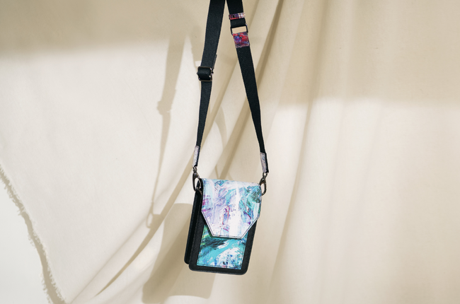 LGBTQの若者の自殺防止に取り組む団体TrevorProjectに売り上げの3%を寄付する『FUTURE PRISMコレクション』。今回、2023年新作として登場したのは”フラップ付き縦型ショルダーバッグ”。コンパクトでありながらも、箱型でサイドのマチをしっかり確保。収納力も安心なバッグは、夏の外出にも最適です。製品制作の過程で出る床革(廃材)を再利用し、革の表面には”分断ではなく共存”というメッセージを込めて描かれたグラフィックプリントがあしらわれています。