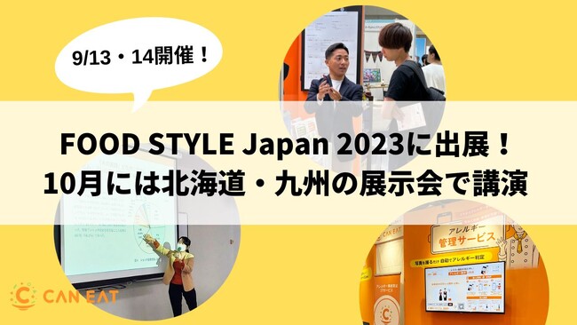 食の多様化への対応をITの力で支援する株式会社CAN EAT(本社:東京都新宿区、代表取締役社長:田ヶ原絵里、以下「CAN EAT」)は、2023年9月13日(水)・14日(木)に東京ビッグサイトで行われる『FOOD STYLE Japan 2023』に出展し、誰でも簡単に正確なアレルギー対応ができる2つのITサービスをご紹介します。