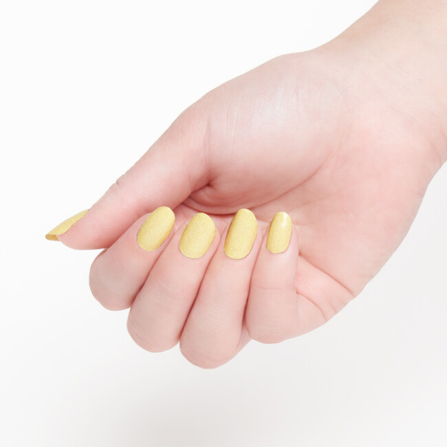 パステルイエローに、細やかなラメがきらめくグリッターネイルです。