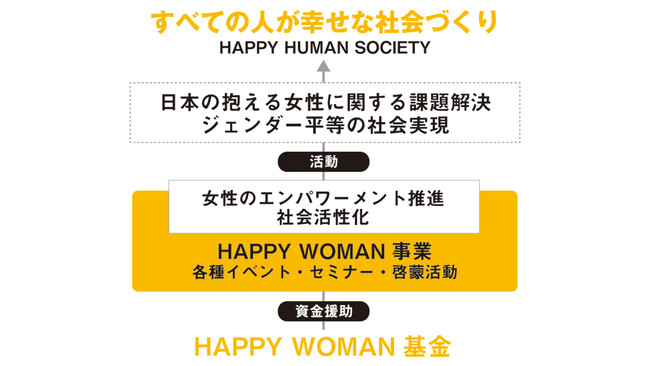 女性が幸せな社会づくりの活動を行うための『HAPPY WOMAN基金』は、国連が制定している「国際女性デー」の普及などHAPPY WOMANの各活動を通じて、持続可能な開発目標(SDGs)の推進、国力の底上げともなる女性活躍推進、男女共同参画社会の形成促進を図る活動に寄与します。共にHAPPY WOMANを増やしていくことにご協力いただける方(個人・法人)からの寄付を募集しています。