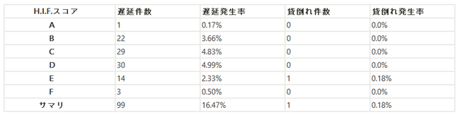 ※H.I.F.スコア毎の「遅延率」「貸倒率」は下図2のとおりです。