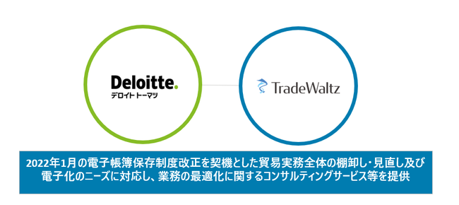 デロイト トーマツとトレードワルツ、協業範囲を拡大し、貿易プロセス改善と電子化を融合させたサービスを展開