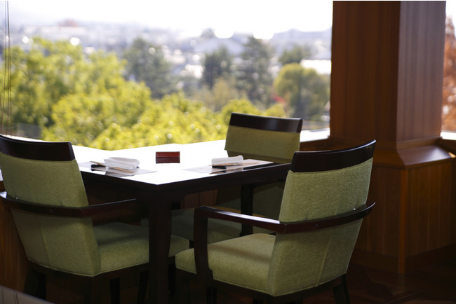 3面の大窓からは、晴れた日には大和の山々を見渡す開放的なパノラマビューをご覧いただけます。店内は本館をデザインした日本を代表する建築家 辰野金吾の意匠を継ぎ木工羽目板を基調としたデザインで、癒しとやすらぎの空間を演出。名画の掛かる落ち着いた店内では、奈良の地酒はもちろんのこと、ソムリエ厳選のワインも取り揃え、お料理に合わせてお楽しみいただけます。