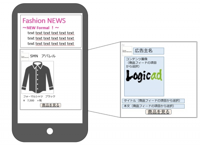「Logicad ダイナミッククリエイティブ」(*3)を利用しているケースでは、共有されている商品データを活用することで、インフィード広告枠への配信も可能となります。