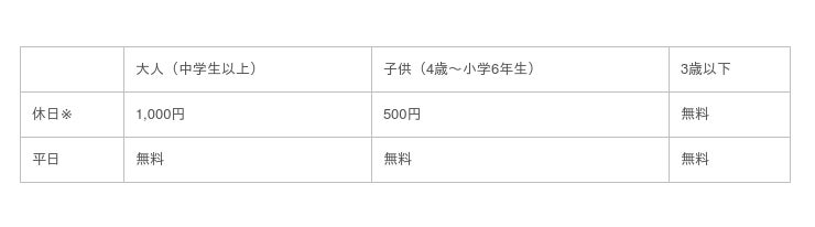 ※荒天時(飲食エリア以外クローズの場合)は入場料無料となります。