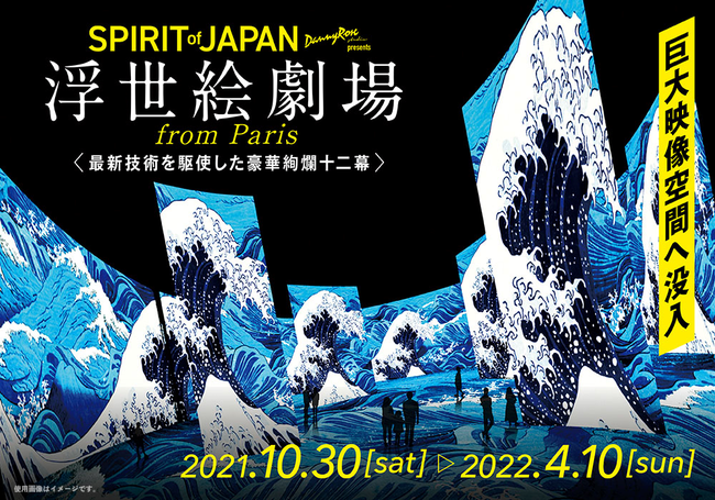 「SPIRIT of JAPAN」として角川武蔵野ミュージアムにてWorld Premier開催される運びとなりました。扇が時を刻み、提灯が宙を舞い、桜の花びらが風に揺れ、荒波がリズムにあわせて頭上を駆け巡る。360度映像に包まれた広大なスペースに展開される「浮世絵劇場」を、全身でご体感ください。