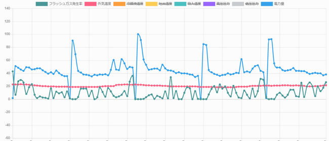 各種センサーにより、温度・電流・外気温といったデータを可視化し、ウェブ上でリアル タイムに把握することができます。これにより、冷却効率の低下に伴う中身商品のロスを防ぎ、設備そのものの長寿命化に繋がります。 また、フロンを使用した冷凍冷蔵設備には、 フロン排出抑制法により3か月毎に1回以上の簡易点検を実施することが義務付けられていますが、フロンキーパーはその代替手段となる「漏えい又は故障等を常時監視するシステム」に該当するため、簡易点検が不要となります。