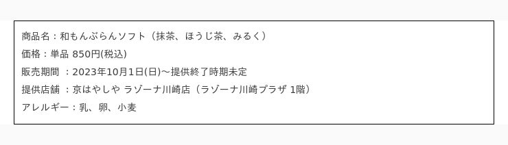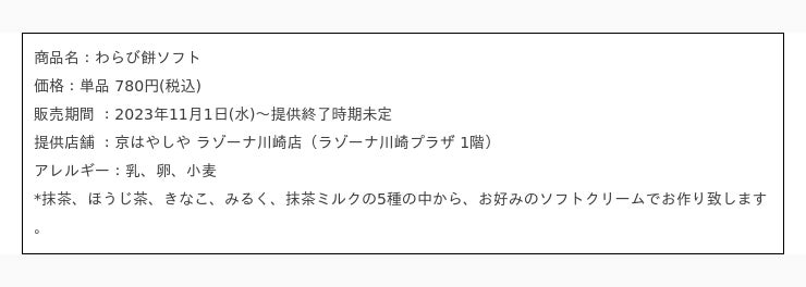わらび餅ソフト メニュー詳細
