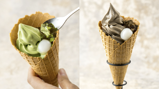もちもち食感の手作りわらび餅と白玉をトッピング。京はやしやのテイクアウト専門店に、ソフトクリームの新作ラインナップが登場。【京はやしや ラゾーナ川崎店】