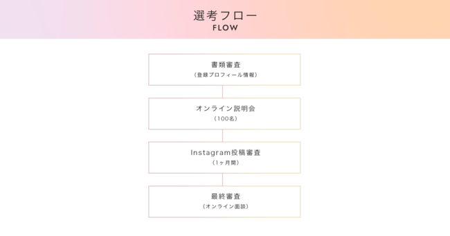「COLORFULLY」への登録情報(プロフィール、宣材写真、SNS等)で選考を行います。