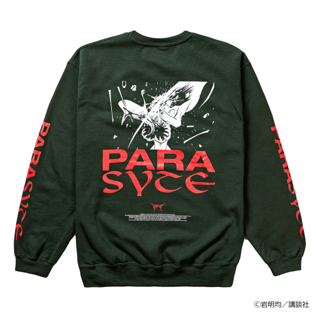 『寄生獣』より作品序盤の印象的なシーンをグラフィカルに表現したSweatshirt。ボディは高品質な12.0ozのヘビーウエイト仕様。裏起毛。プリントはシルクスクリーンプリント。