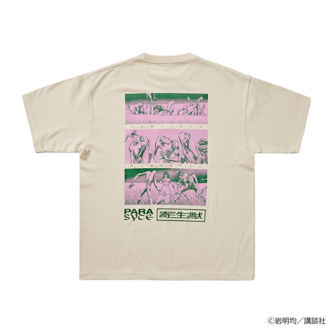 『寄生獣』第48話「ただいま」より、"田宮 良子"の印象的なシーンをバックにプリントしたT-Shirts。ボディは9.1oz、ビッグシルエット。プリントはシルクスクリーンプリント。
