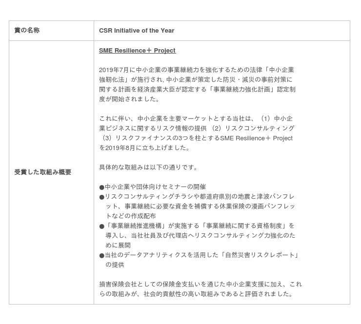 今回、AIG損保が受賞した取組みは下記の通りです。