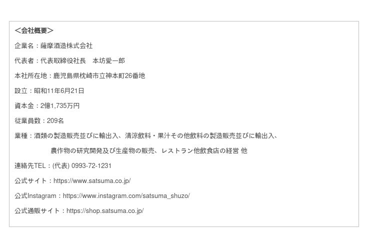 キャンペーンの詳細は、薩摩酒造公式インスタグラムをご確認ください。