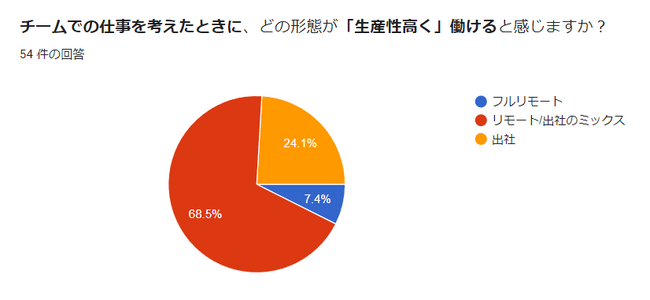 個人的には家が遠いのでリモートワークの方が仕事をしやすいが、出社をした方が生産性が上がる方もいるので、みんなが納得するのはハイブリッドだと思う。
