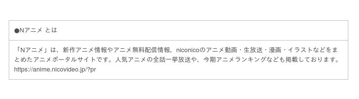 「niconico」での配信情報を、アニメ総合情報サイト「Nアニメ」よりお知らせします。