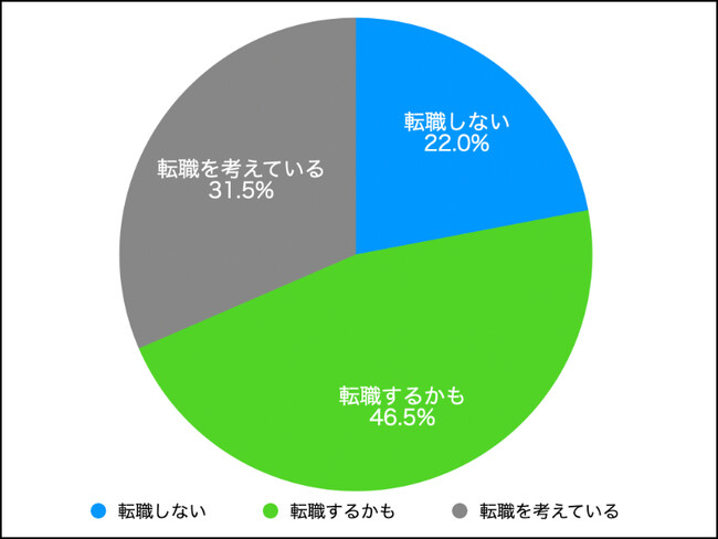 企業で働く20代〜40代のうち、「転職しない」と回答した人は22%だけでした。